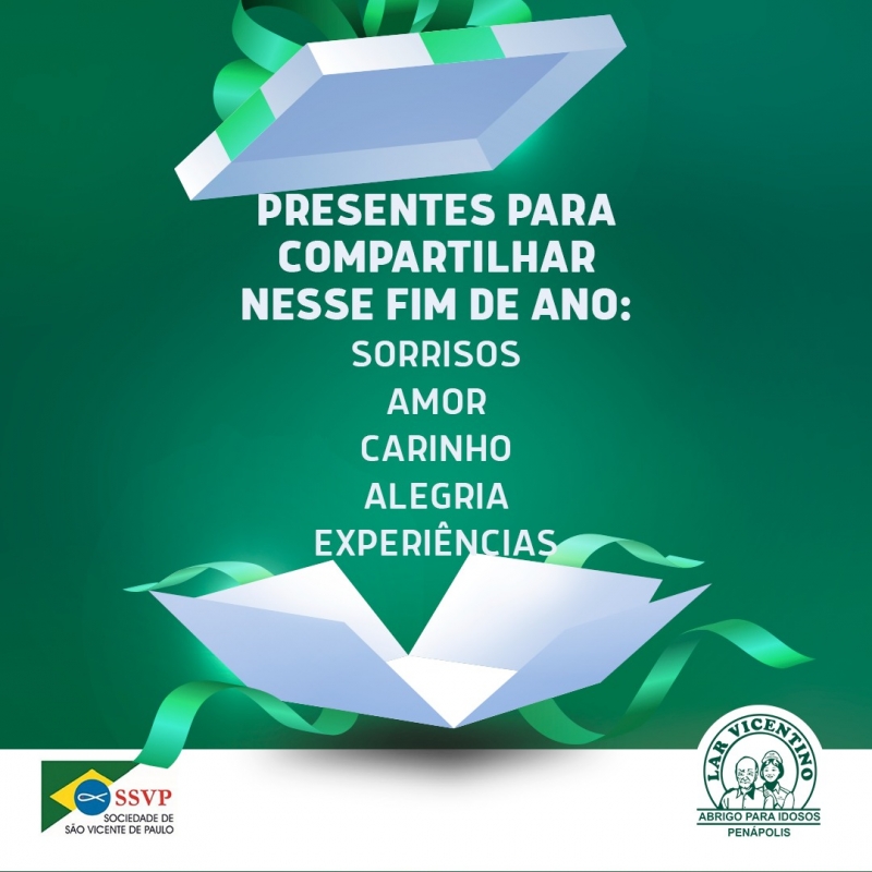 Com o fim de ano chegando, cresce em nós o sentimento de presentear as pessoas amadas e compartilhar ainda mais boas ações. O Lar incentiva essas ações, pois sabemos que quanto mais doamos, mais temos a ganhar!